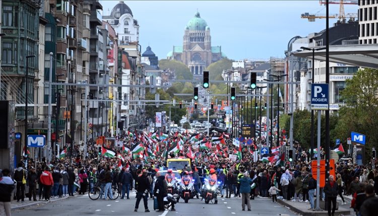عمان الان – تظاهر عشرات الآلاف من الأشخاص في العاصمة البلجيكية بروكسل، الأحد، احتجاجا على العدوان الإسرائيلي على قطاع غزة ولبنان.