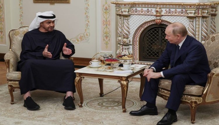 واستقبل بوتين اليوم الأحد نظيره الإماراتي في مقر إقامته في نوفو أوغاريفو، حيث ستعقد مأدبة عشاء “غير رسمية” تجمع الرئيسين.
