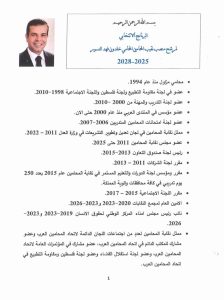 الزميلات والزملاء الاكارم – أتقدم إلى كل واحد منكم ، ببرنامجي الانتخابي الذي أؤيده واخوض الانتخابات على اساسه ، مسلحاً بالثقه بالله عز وجل ومؤازرتكم ان قدر لي النجاح بمسعاي هذا.