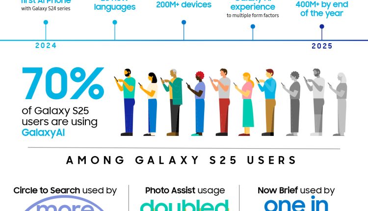 ومع إطلاق سلسلة ‘Galaxy S24’، أعلنت سامسونج عن التزامها بتوسيع نطاق ‘Galaxy AI’ ليشمل أكثر من 200 مليون جهاز خلال عام 2024، ما شكّل بداية عصر جديد من الابتكار في الذكاء الاصطناعي عبر الأجهزة المحمولة. ومنذ ذلك الحين، واصلت ‘Galaxy AI’ تطورها محدثة تحولاً في قدرات الهواتف الذكية، حيث يستخدم أكثر من 70٪ من مستخدمي ‘Galaxy S25’ مجموعة من أدوات الذكاء الاصطناعي من سامسونج وجوجل. وسجلت أداة ‘Google Gemini’ النمو الأكبر، حيث تضاعف استخدامها ثلاث مرات على أحدث سلسلة ‘Galaxy S’ .