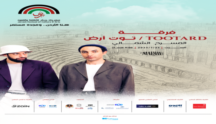 عمان الان -يستضيف مهرجان جرش للثقافة والفنون ضمن فعالياته المتواصلة للعام 2025، أمسية موسيقية مميزة تحييها فرقة “توت أرض / TootArd” على المسرح الشمالي يوم السبت الموافق 26 تموز 2025، عند الساعة التاسعة مساءً.
