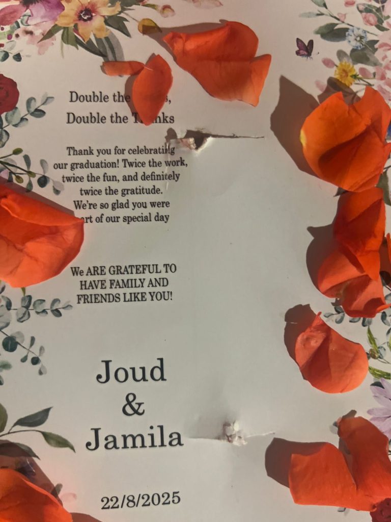 عمان الان – يتقدم رجل الاعمال حامد عوض بأسمى آيات التهاني والتبريكات من الصديق محمد سميح العطاري بمناسبة نجاح ابنتيه جود وجميلة في امتحان الثانوية العامة، متمنياً لهما مزيداً من التفوق والنجاح في مسيرتهما القادمة.