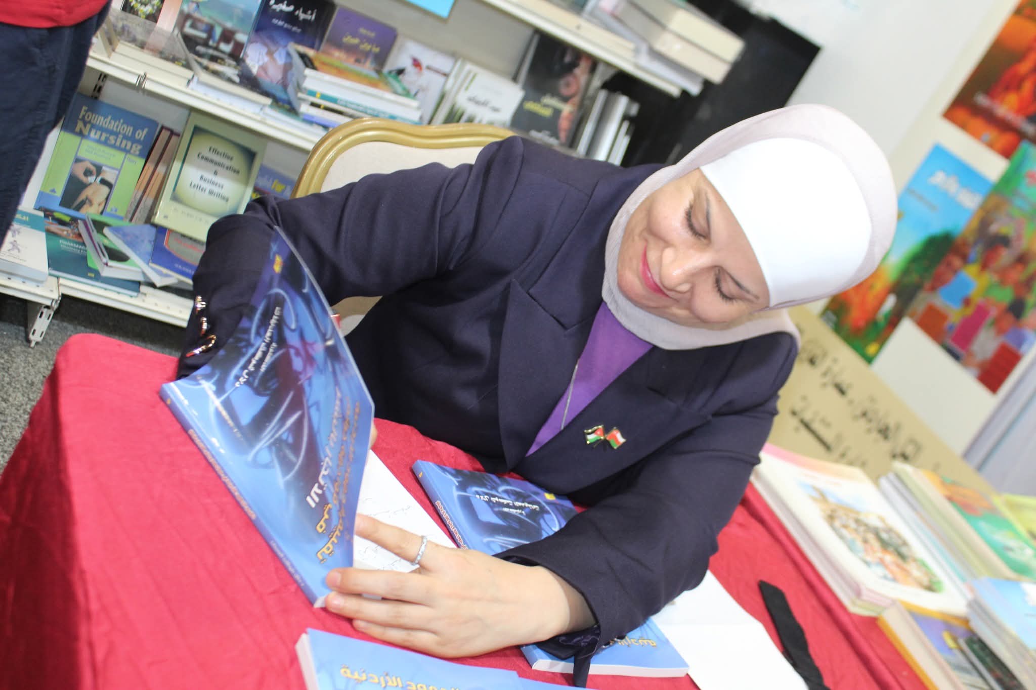 الأديبة سارة طالب السهيل توقّع قصتها للاطفال “كفاح الفلاح” في معرض عمّان الدولي للكتاب.