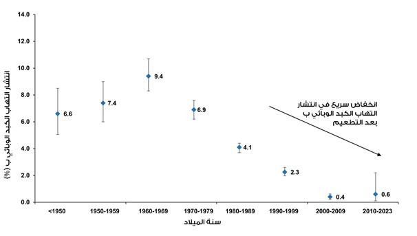 وتكشف نتائج الدراسة عن العبء المترتب على التهاب الكبد ‘ب’ في الأردن، غير أنها تُظهر أيضاً انخفاضاً حاداً في معدل انتشار المرض، فقد انحسر بنسبة تناهز 7% سنوياً على مدى السنوات الخمس عشرة الماضية. وأصبحت معدلات الإصابة الآن منخفضة جداً بين من ولدوا بعد بدء التطعيم ضد التهاب الكبد ‘ب’ في عام 1995، لكنها ما تزال مرتفعة بين الأجيال الأكبر سناً التي ولدت قبل حملات التطعيم الواسعة النطاق.
