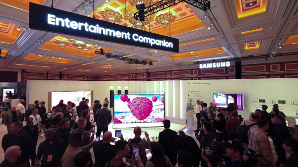 برزت منطقة “الرفيق الترفيهي” (Entertainment Companion) كأكبر أقسام المعرض، حيث ضمّت مجموعة واسعة من حلول العرض المرئي ومنتجات الصوت المتقدمة. وشكّل الإطلاق الأول لتلفزيون Micro RGB بقياس 130 بوصة من سامسونج، والحائز على جائزة أفضل ابتكار ضمن جوائز معرض الإلكترونيات الاستهلاكية للابتكار لعام 2026، محطة بارزة ضمن المعرض.