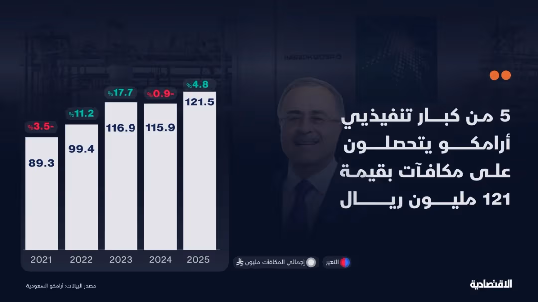 أرامكو ترفع مكافآت كبار تنفيذييها 5% إلى 122 مليون ريال خلال عام