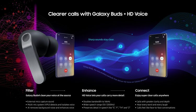 سلسلة سماعات Galaxy Buds4 ترتقي بوضوح المكالمات إلى آفاق جديدة مع تقنية الصوت عالي الدقة HD Voice
