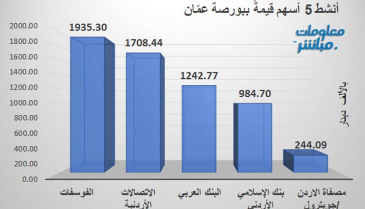 مناجم الفوسفات يتصدر النشاط قيمةً في بورصة عمّان جلسة الاثنين