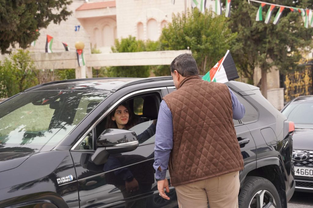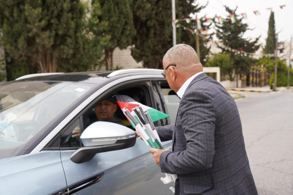 أنس القروم يرأس حملة ميدانية لتوزيع الأعلام في دير غبار احتفالاً بيوم العلم الأردني