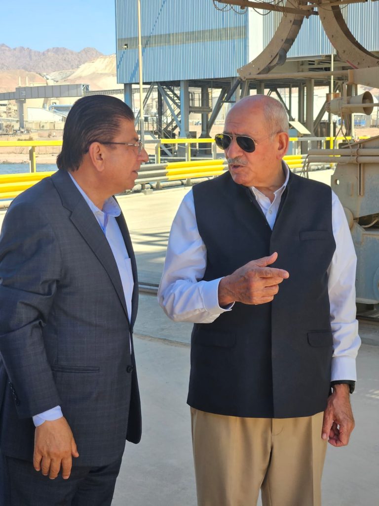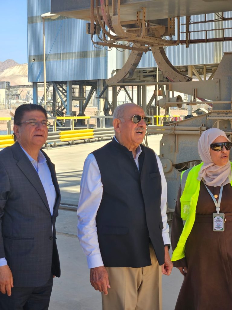 تفقد رئيس مجلس إدارة شركة مناجم الفوسفات الأردنية، الدكتور محمد الذنيبات، يرافقه الرئيس التنفيذي المهندس عبدالوهاب الرواد، سير عمليات الشحن والمناولة في ميناء تصدير الفوسفات في العقبة، ضمن جولة ميدانية شملت الميناء والمجمع الصناعي وعددًا من مواقع العمل.