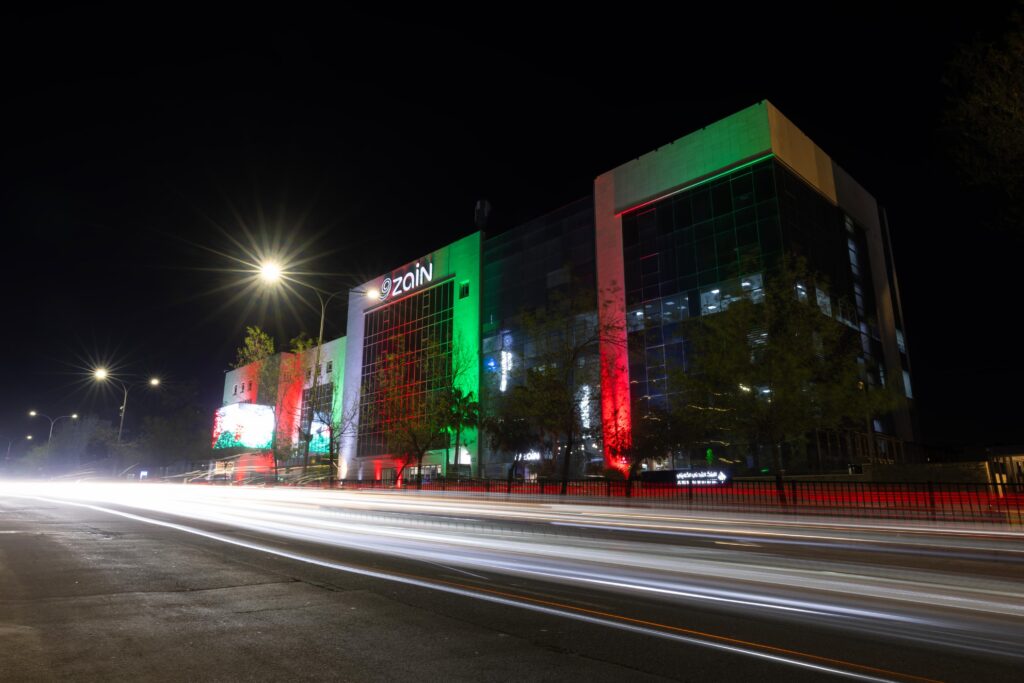 زين تبدأ احتفالاتها بيوم العلم بإضاءة مبانيها بألوان العلم – صور