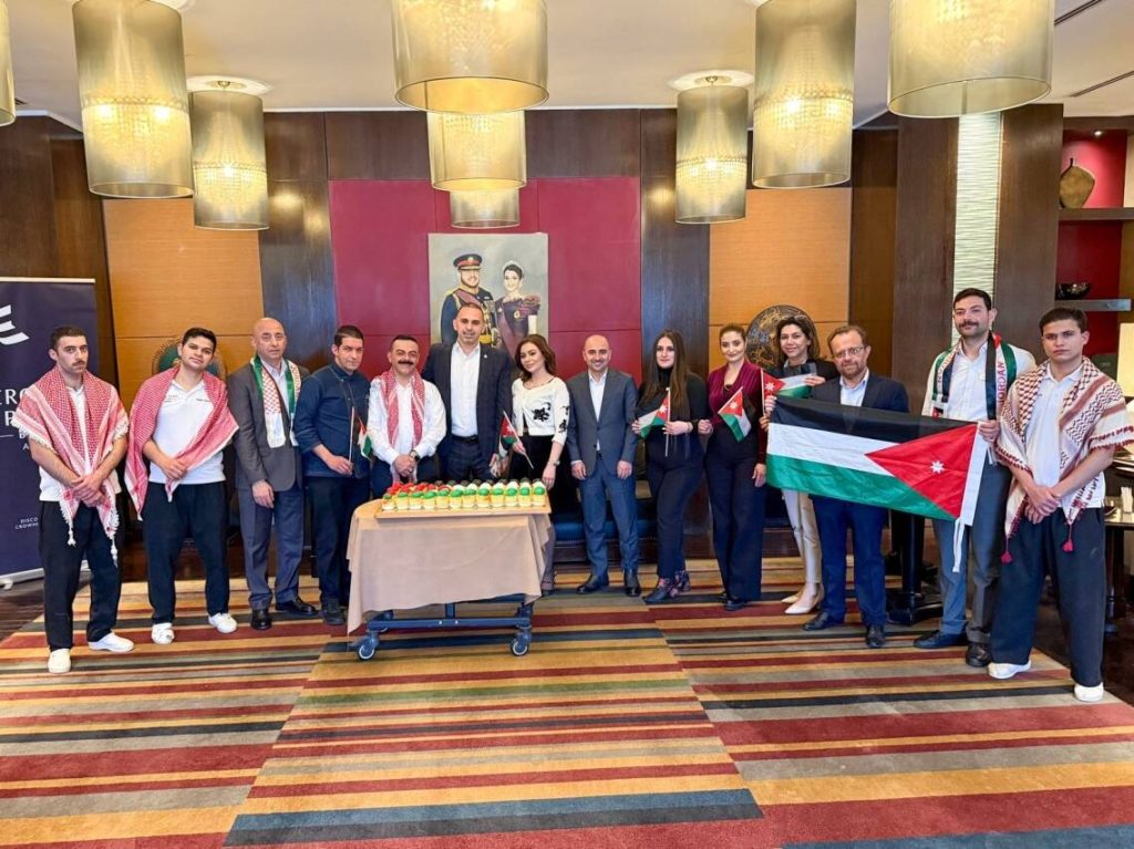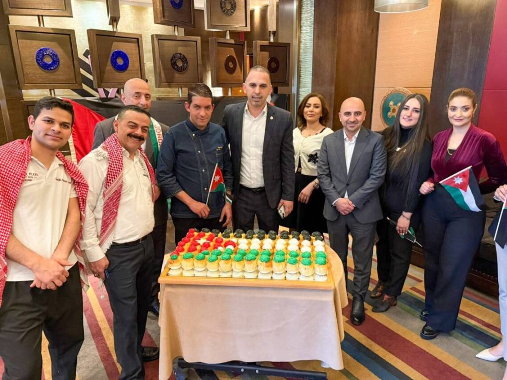 وتضمنت الفعالية توزيع الحلويات الخاصة بهذه المناسبة الوطنية على الحضور، إلى جانب بث الأهازيج والأغاني الوطنية التي أضفت أجواءً حماسية عبّرت عن الاعتزاز بالوطن ورايته. كما قام الفندق بإضاءة واجهته بألوان العلم الأردني لعدة أيام، في خطوة تعكس المشاركة الفاعلة في الاحتفال بهذه المناسبة الوطنية الغالية.