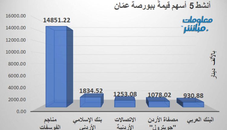 مناجم الفوسفات يتصدر النشاط قيمةً وحجمًا في بورصة عمّان جلسة الأربعاء